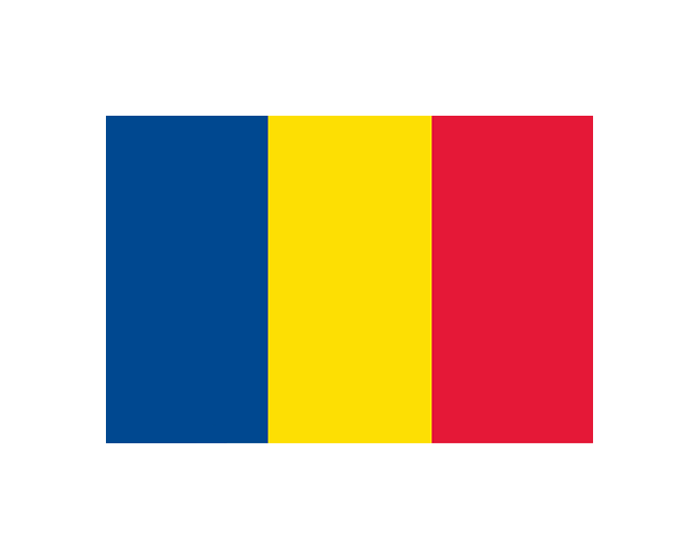 羅馬尼亞(Romania),位于東南歐巴爾干半島東北部。羅馬尼亞國旗呈長方形,長寬之比為3:2。由三個平行相等的豎長方形組成,從左至右依次為藍(lán)、黃、紅三色。藍(lán)色象征藍(lán)天,黃色象征豐富的自然資源,紅色象征人民的勇敢和犧牲精神。在民族色彩上,藍(lán)色象征特蘭西瓦尼亞、黃色象征瓦拉幾亞,紅色象征摩爾多瓦。1994年7月16日啟用。除了和乍得國旗的藍(lán)色色條有細(xì)微區(qū)別,其他一樣。