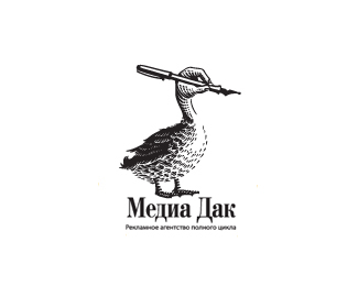 廣告公司名為媒體鴨,商標(biāo)除了呼應(yīng)公司的名稱,更以極度夸張大膽的想象力征服視覺受眾,手拿畫筆體現(xiàn)了廣告公司的美化含義,類似古怪離奇的設(shè)計還有人頭馬,美人魚等怪異組合。