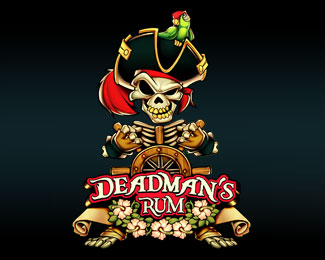 Deadmans Rum長島朗姆酒標志設計欣賞,使用骷髏海盜船長作為該酒類品牌的創意圖形。