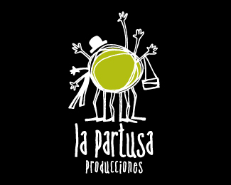 La Partusa抽象服飾品牌標志設計,應用了帽子、包、圍巾、手、腳等元素,使用綠色作為主識別色。