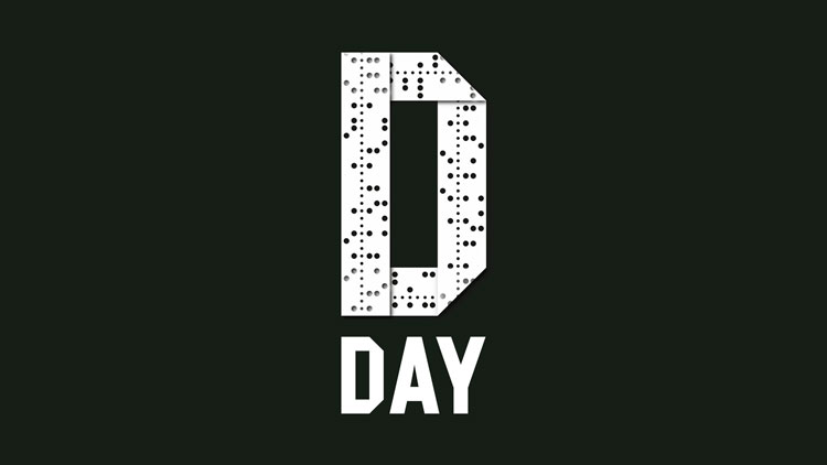 由Rose Design設計的諾曼底登陸日展覽活動品牌視覺形象設計,圍繞著二戰期間用來記錄截獲信息的自動記錄帶,通過一個由大大小小的穿孔點組成的代碼。它是第一個數字通信媒介,從1870年起被用來通過電報線路傳送股票價格。