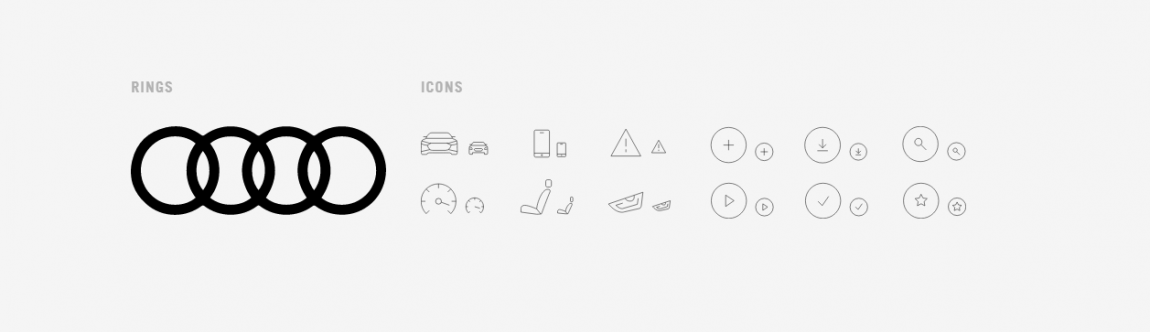 除了新企業vi設計,Strichpunkt還為奧迪設計了一個品牌網站,該網站讓人們可以在網上自由訪問品牌設計的指導原則,從排版、圖標、字體和圖像的大小比例,到創建不同數字組件所需的html代碼,無所不有。