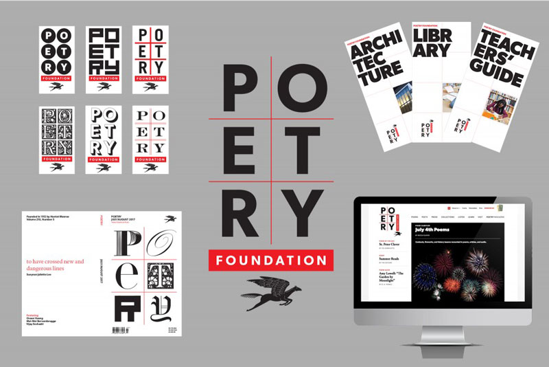 五角星設計已經把基金會的名字放在視覺識別的中心,用“詩歌”這個詞出現在各種不同的字體和風格,以強調藝術形式“一直在發展,永遠是新的”。